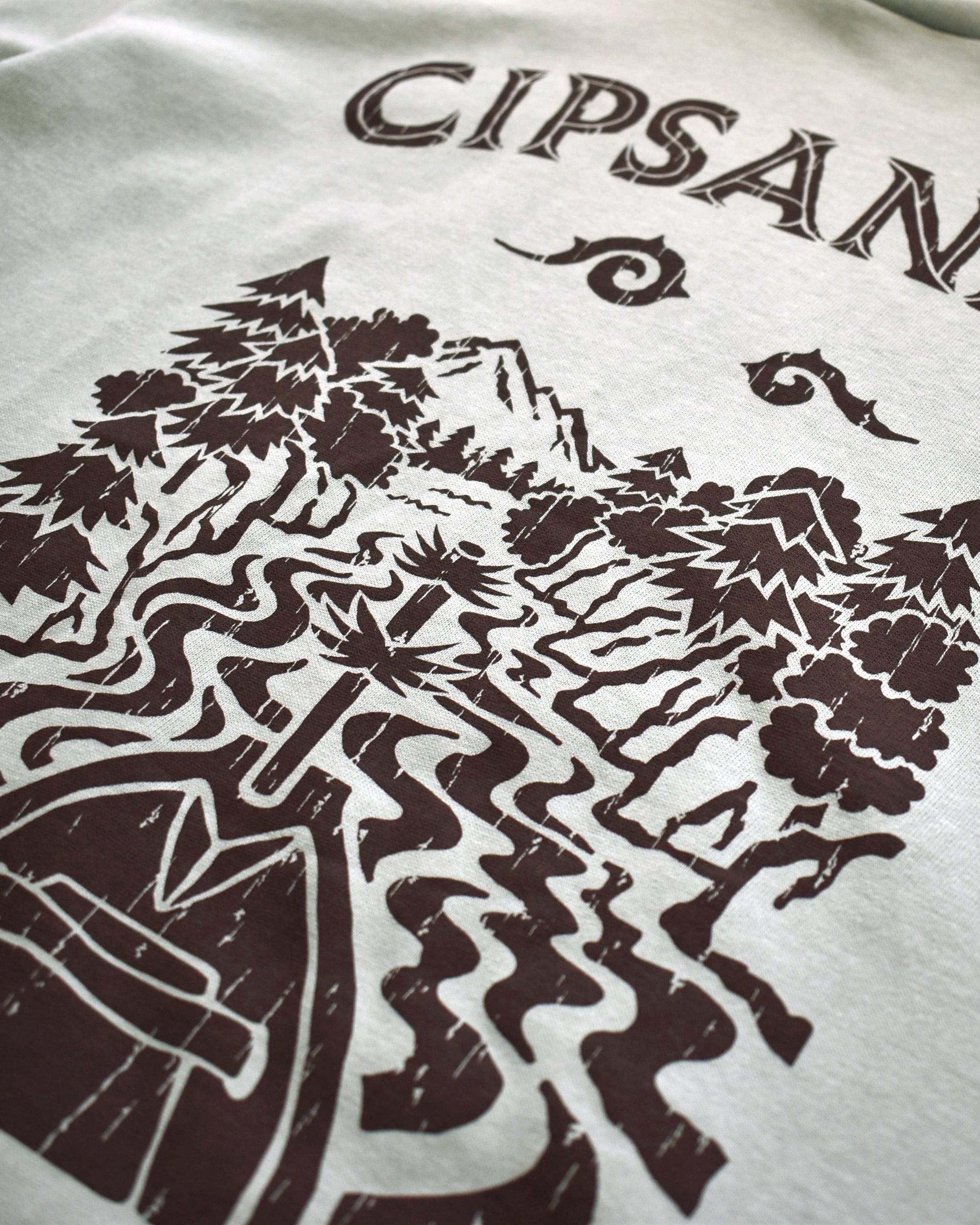 自社ブランドの他、RSR(ライジングサンロックフェスティバル)のオフィシャルグッズなど多岐にわたるデザインを手がける彼女の手腕で、チプでの川下りの醍醐味が伝わる秀作デザインが完成しました。